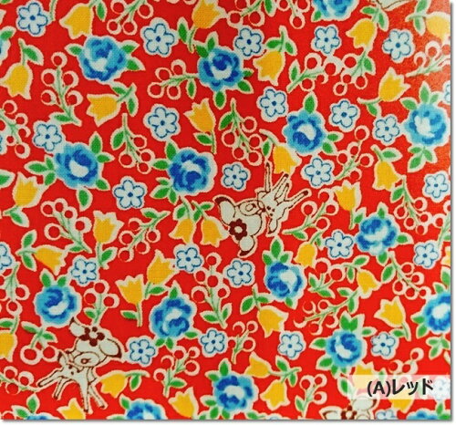 とっても可愛いです お花の中のさりげないバンビがキュートで可愛いです ○組成:綿100%○生地幅:約108cm※10cmの価格になります綿100%のさらっとしたシャーティング生地をビニールコーティング加工しました。